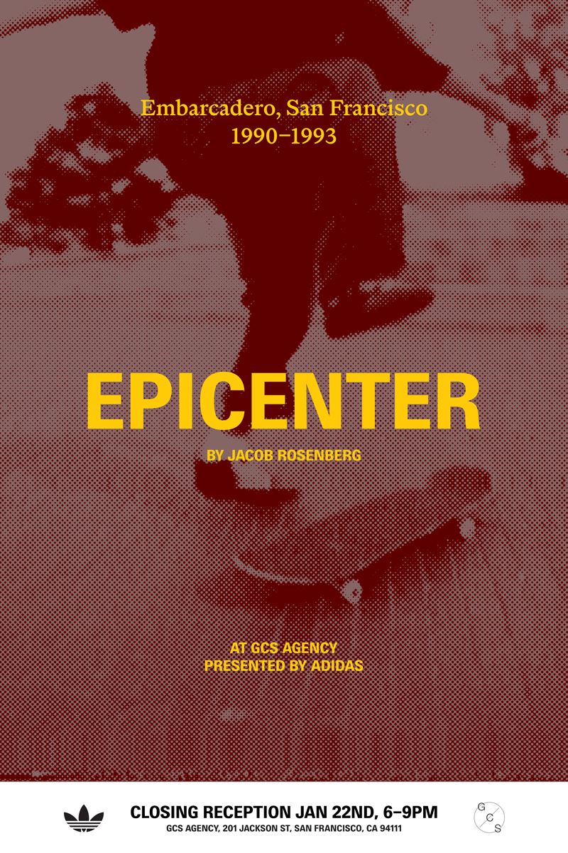 Presented by adidas Skateboarding and GCS Agency, Co-Curated by Ted Barrow, PhD, EPICENTER is a two-site exhibition honoring the birth of plaza skateboarding at EMB as captured by Jacob Rosenberg.